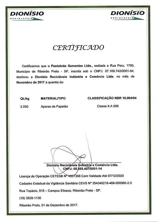 Após uma década de existência, a Pastobras continua produzindo sementes de alta qualidade fomentando sua utilização em todo território nacional e exportando para mais de 20 países, para formação de excelentes pastagens no Brasil e no mundo.